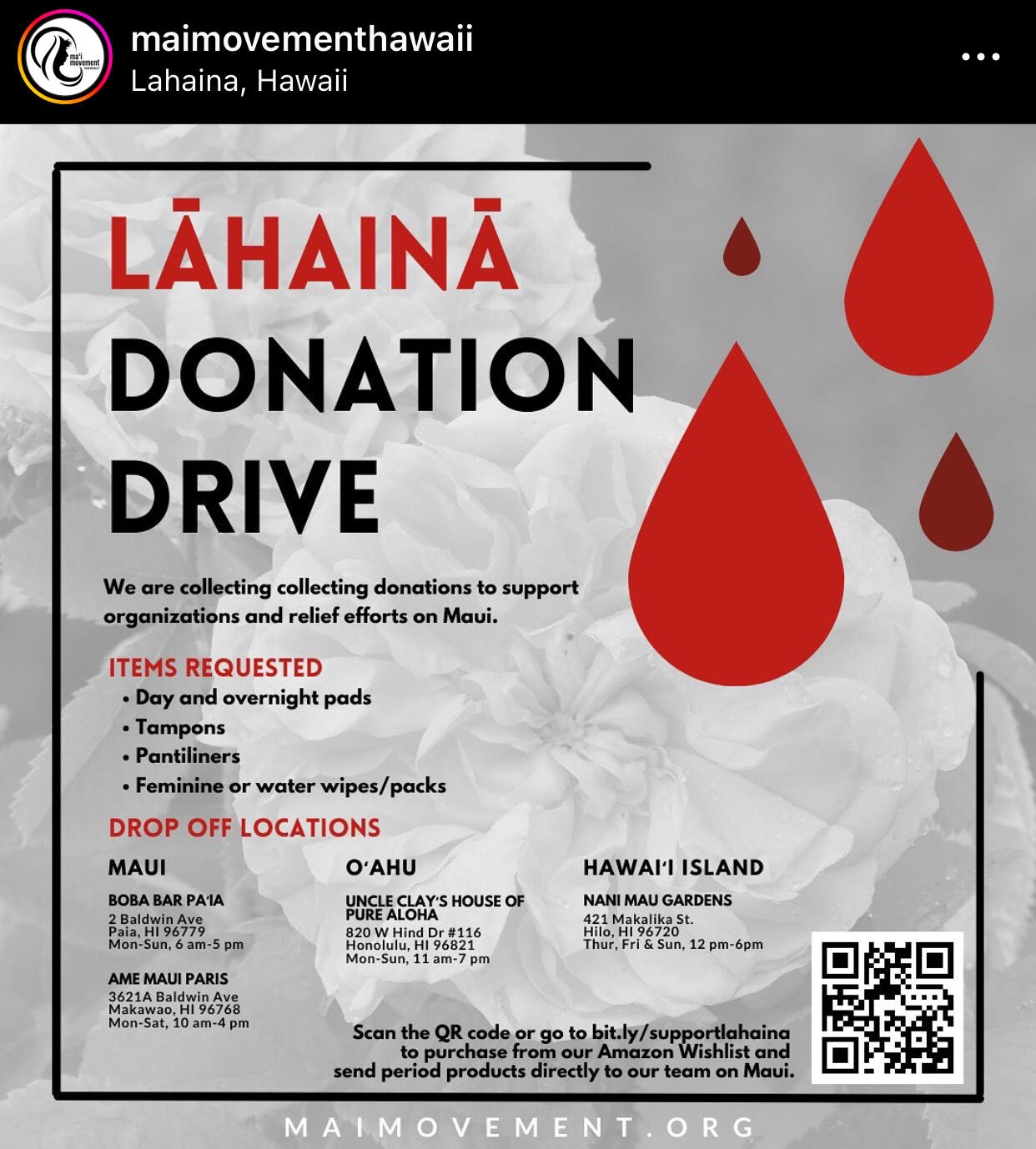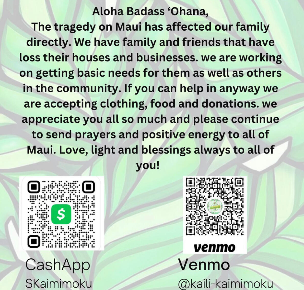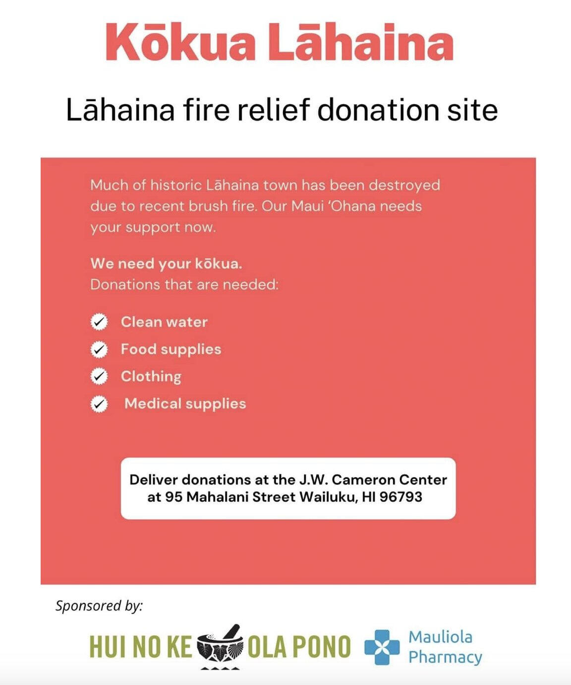 Donation needs have changed over the last few days. Maui orgs are asking folks not to donate goods unless they/the org they donate to have people on the ground ready to receive it. There isn’t enough storage or people available to distribute donations on the ground in Maui.