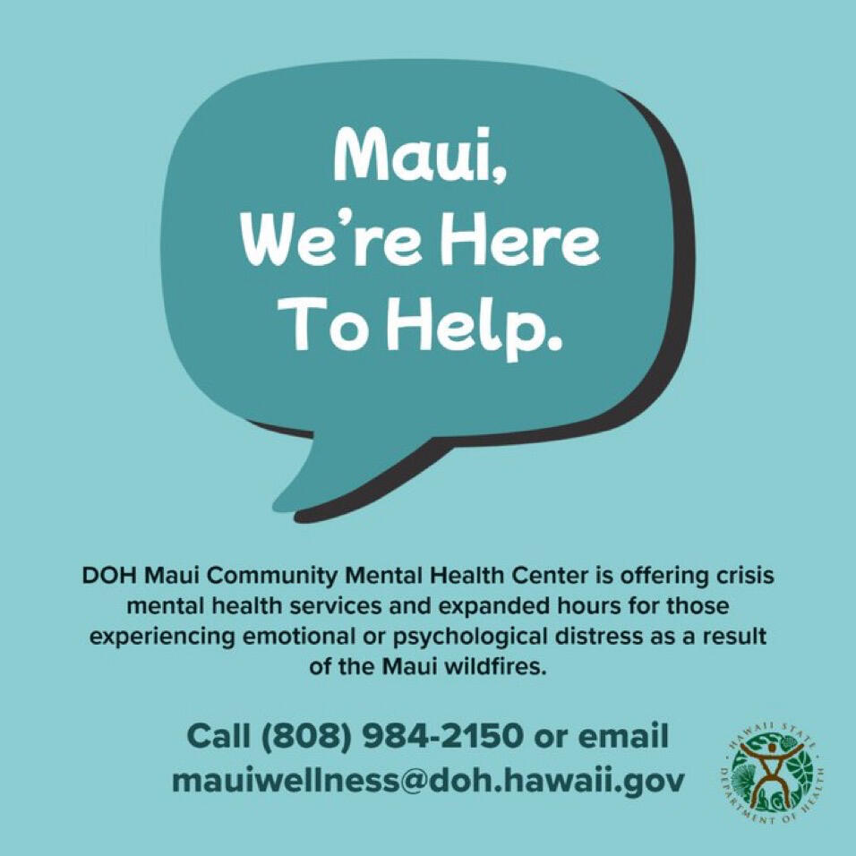 Free therapy services for Maui residents courtesy of Piko Therapy - Lauren Melendez. Email and text preferred. Email linked at button below and phone number is (480)779-9921.
