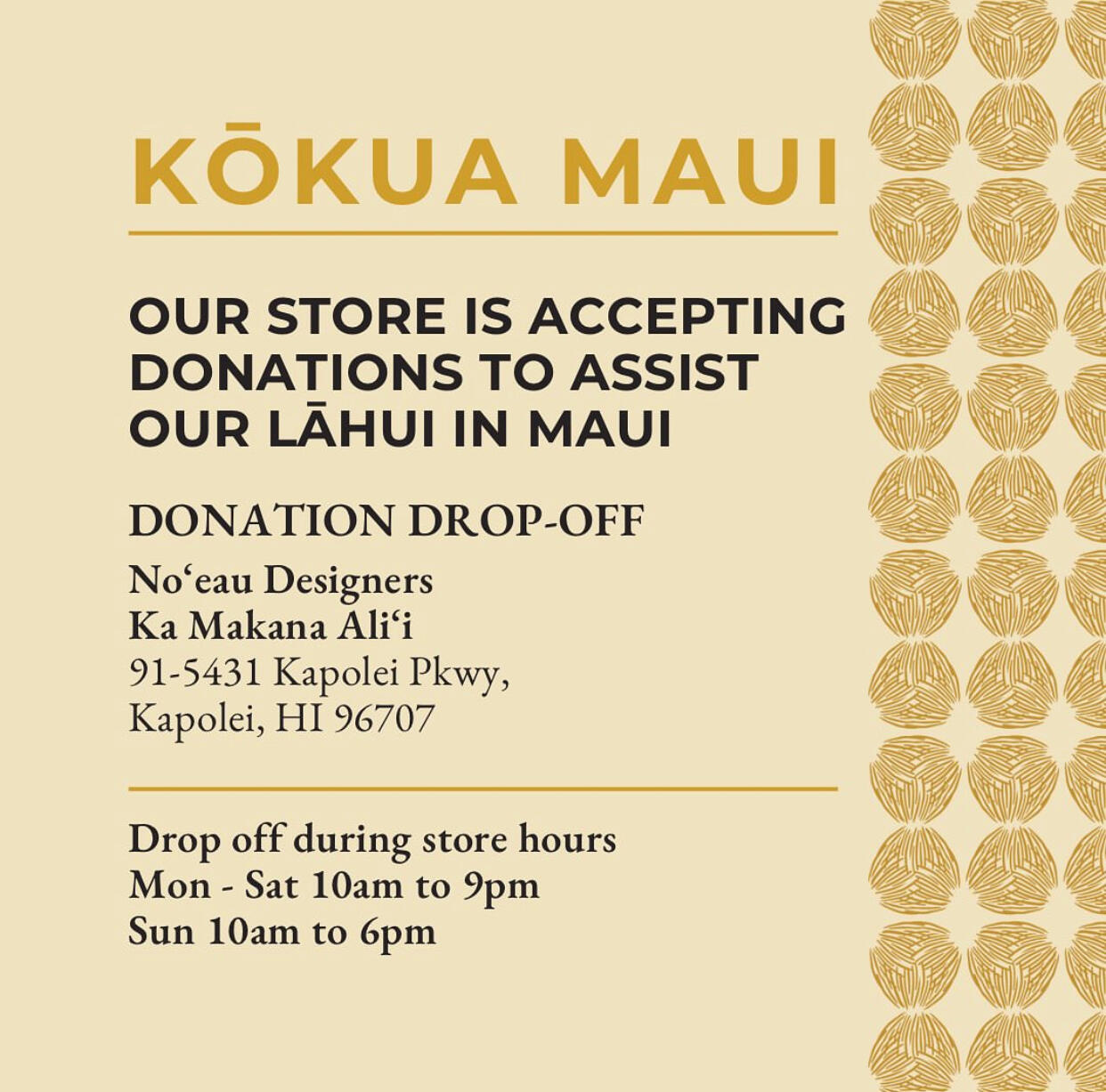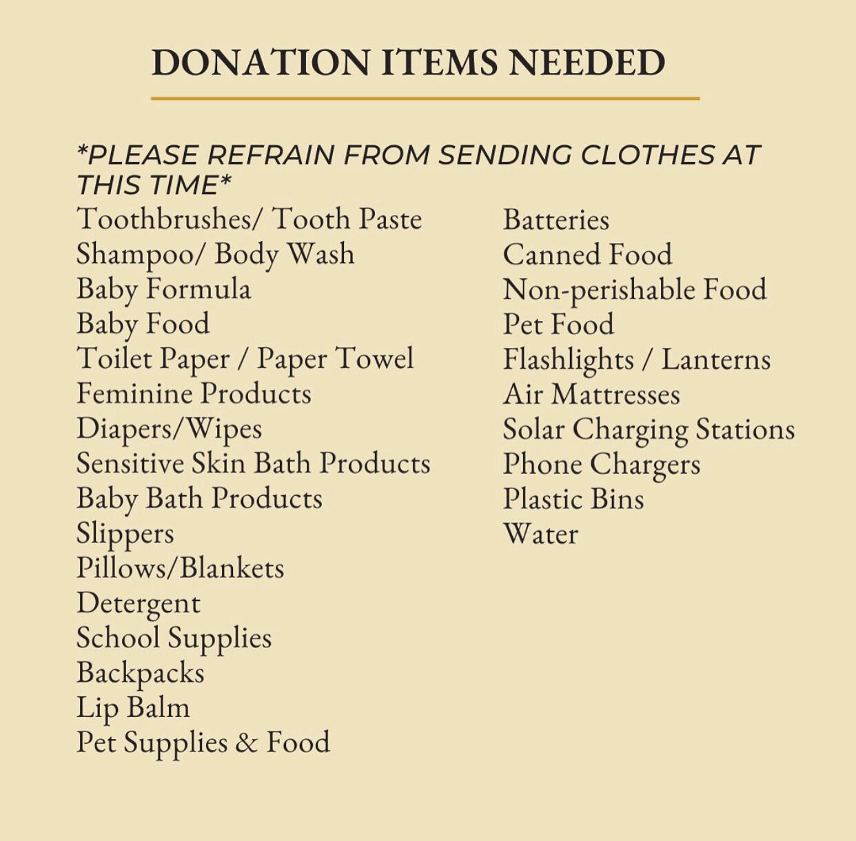 “The Sun Spot will be a donation spot in Azeka mall. We have a back room that can hold a lot of stuff. We can take clothing, bedding, beds, hygiene products, non perishable food items. We are also personally collecting funds to make a huge batch of soap and shampoo bars for those effected.”The Sun Spot, Azeka Mall